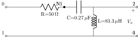 provides the transfer function and two-port representation of the filter in sympy via its own methods by using the lcapy schematic